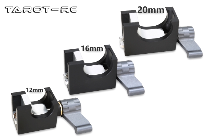 Tarot最新出品的Φ12mm碳纤管快装紧固件,采用6061T6全铝合金CNC精密加工而成,旋钮式锁紧安装方便快捷,可稳定抱紧碳纤管安全可靠,旋钮扣的回弹式拉取设计可在旋转过程中碰到遮挡物的情况下方便微调旋转位置,此款产品适用于云台挂载、电池挂载等任意挂载件的快装快拆。