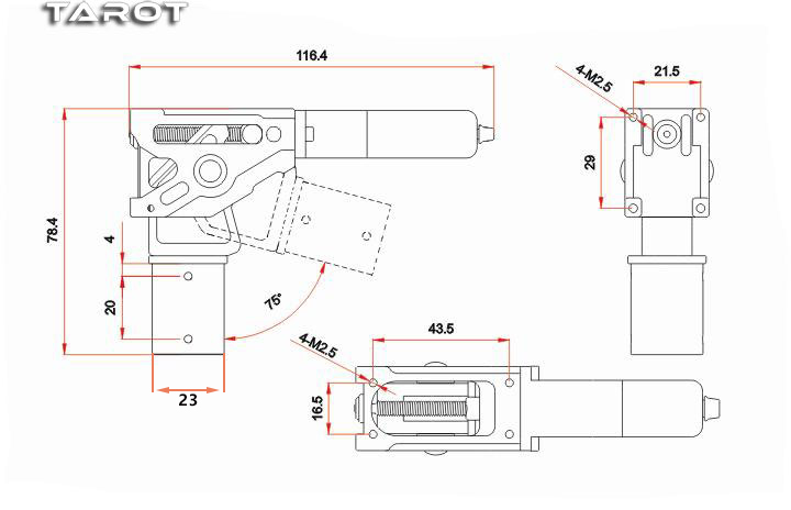 全金属大型电动收放起落架采用6061T6工艺铝合金CNC加工,适用于脚架管外径Φ25MM(内径Φ23MM)碳管的各种多轴飞行器DIY改装。是目前同类产品中整合度最高的产品,整体设计结构简单,安装快捷方便、占位小。专属订购的大扭力电机性能可靠耐用。