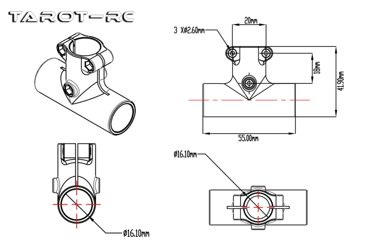 Product:Tarot T type Tripod Adapter/Plastic/16 to 16mm TL1801