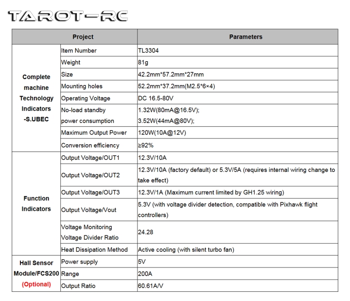 Product Description:·Tarot's 120W High-Power S.UBEC Buck Power Supply Module;