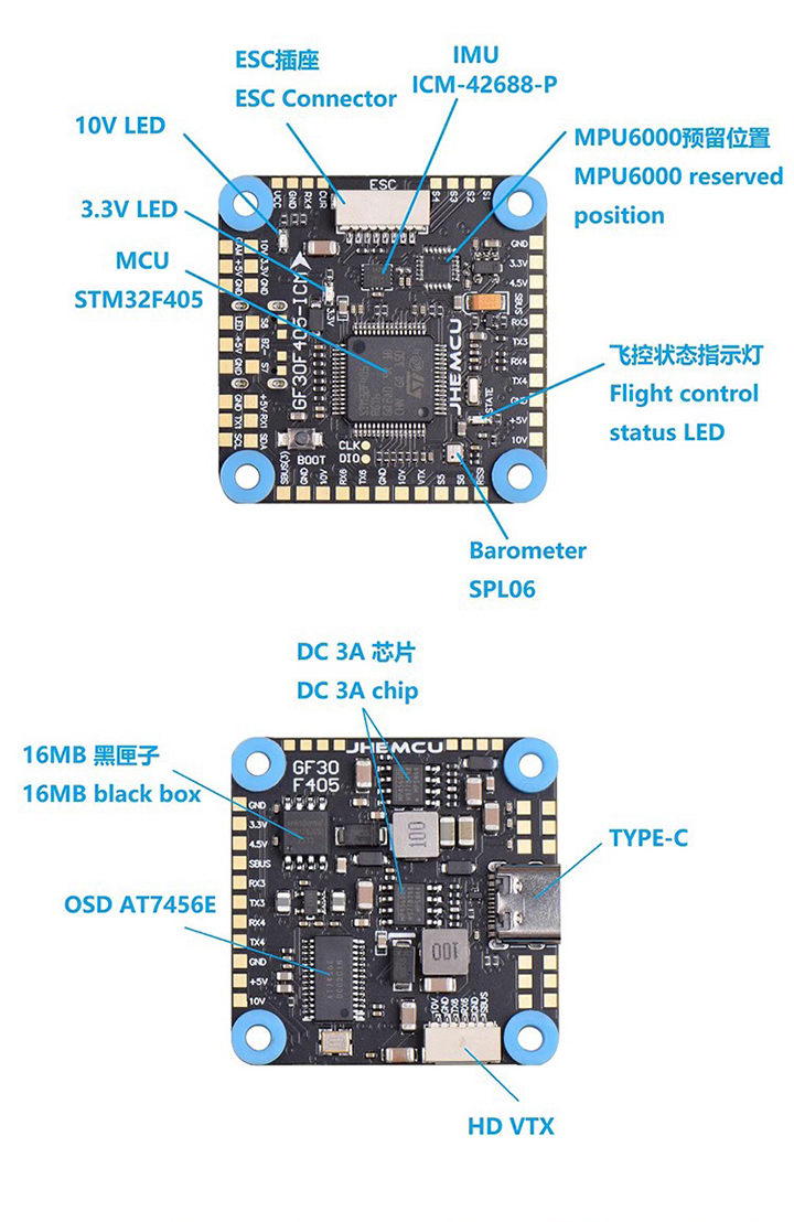 ·JHEMCU factory mini F405 flight control, support 3-8S voltage input;