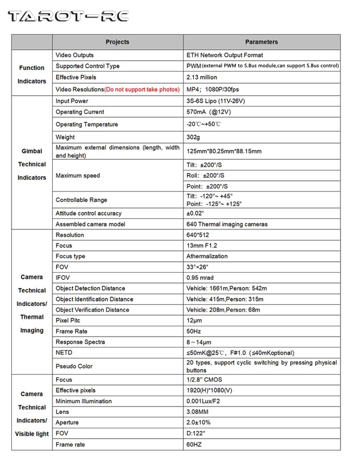 ·PWM receiver support,control gimbal Tilt/Point,Visible light/thermal imaging PIP four mode switching;