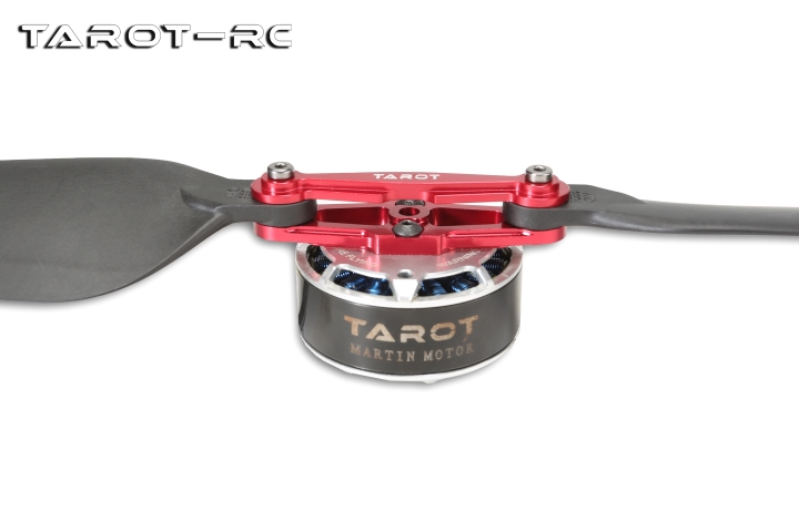 Tarot出品的新款折叠桨夹座,采用6061T6铝合金全CNC加工,适用于对称螺丝孔中心距12mm的各款电机,推荐使用16-19寸折叠桨。此款金属桨夹座安装方便,配套各款折叠桨使用可使效率更高。