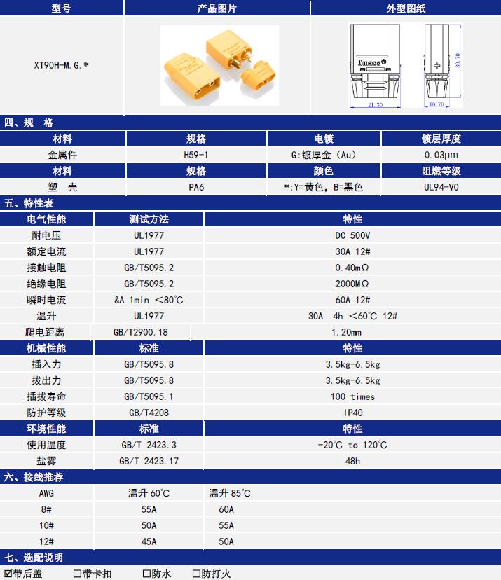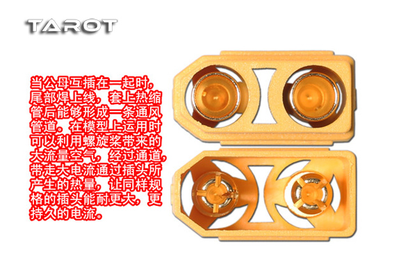Amass XT90防滑插头,为应对目前市场上对耐更大电流插头的要求。采用4.5mm镀真金香蕉插头,轻量化设计、体积小,耐电流大。独创性地设计了镂空塑件设计,利用模型高速气流主动对插头进行散热。耐电流90A(持续)、120A(峰值),适合需要耐电流比XT60插头大,但是又需要插头重量轻和体积比较小的场合。例如700级直升机,大电流车、船模等。标配6mm热缩管。注意:母头端为电池用;公头端为电调,充电器用。
