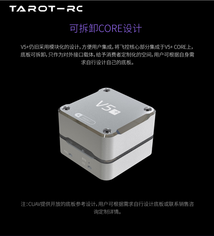 雷迅/CUAV公司出品的V5+飞控,是CUAV与PX4团队共同设计并由CUAV制造的高级自动驾驶仪。它基于Pixhawk FMUv5设计标准,并且完美兼容PX4 和 ArduPilot固件。