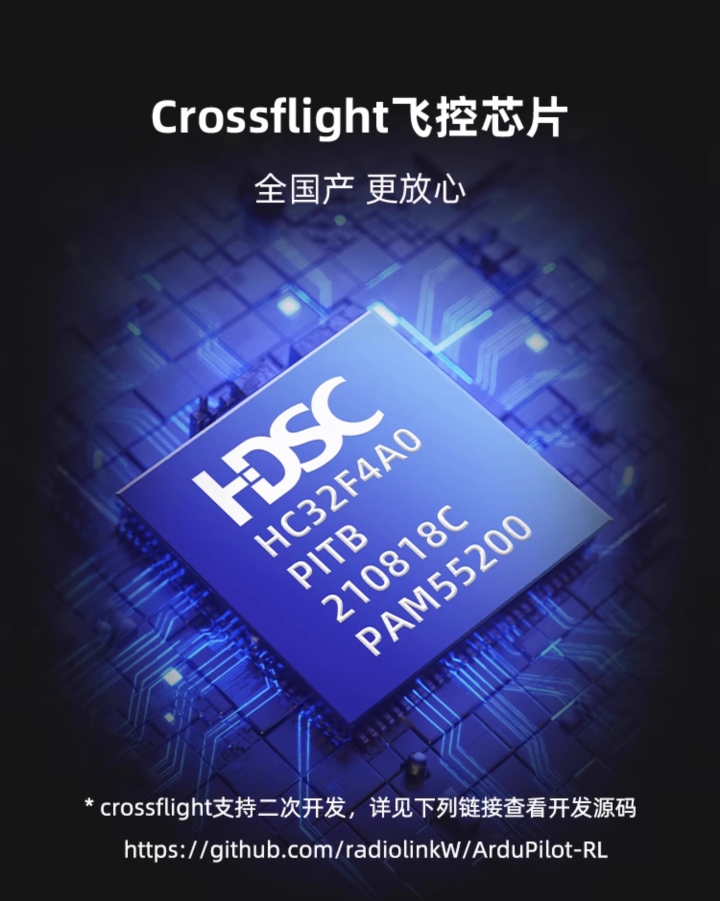 乐迪/Radiolink公司出品的Crossflight型号开源飞控,采用软件减震,定点定高更精准,高速模式下飞行超稳,内置OSD模块,无需外接OSD模块即可实时图形化显示飞行器飞行方向和位置等OSD信息,适用于垂直起降固定翼,3-8轴多旋翼,直升机,无人机物流系统,无人送货车,打窝船,飞行编队,测绘,植保,消防,水质检测,森林巡检,防疫机器人,消防机器人,青少年培训教育(无人机职业技能大赛,CADC 对地侦察与打击等项目)等各行业用机。