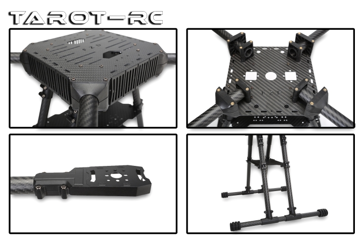 Tarot最新出品的680轴距四轴机型塑料款,采用一体化非折叠结构设计,整机牢靠结实,适用于监控、遥感、测绘、空中侦查、火场观察、生命探索、电缆巡线、农场监测、等对移动性能要求高,设备载重不大的应用领域。