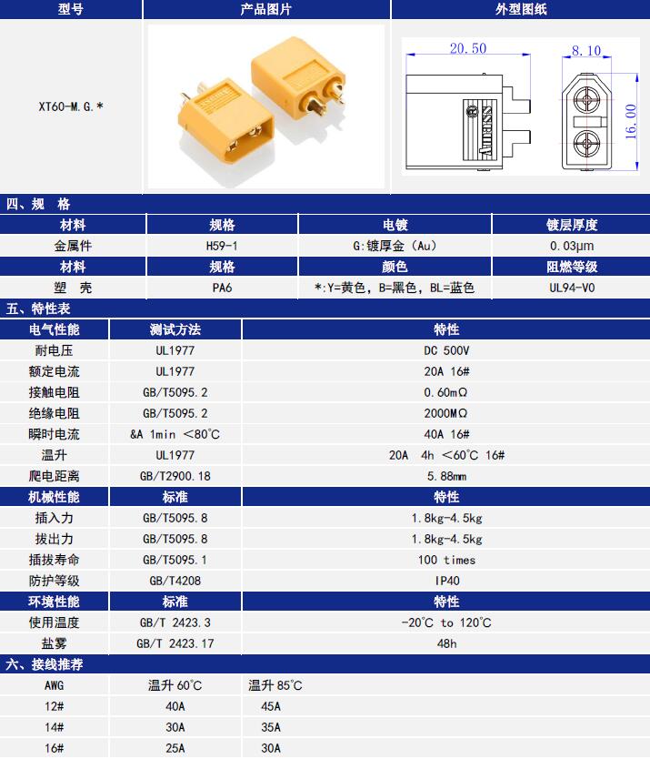 产品名称:艾迈斯/Amass XT60镀金防滑插头/五对装 TL10152-01