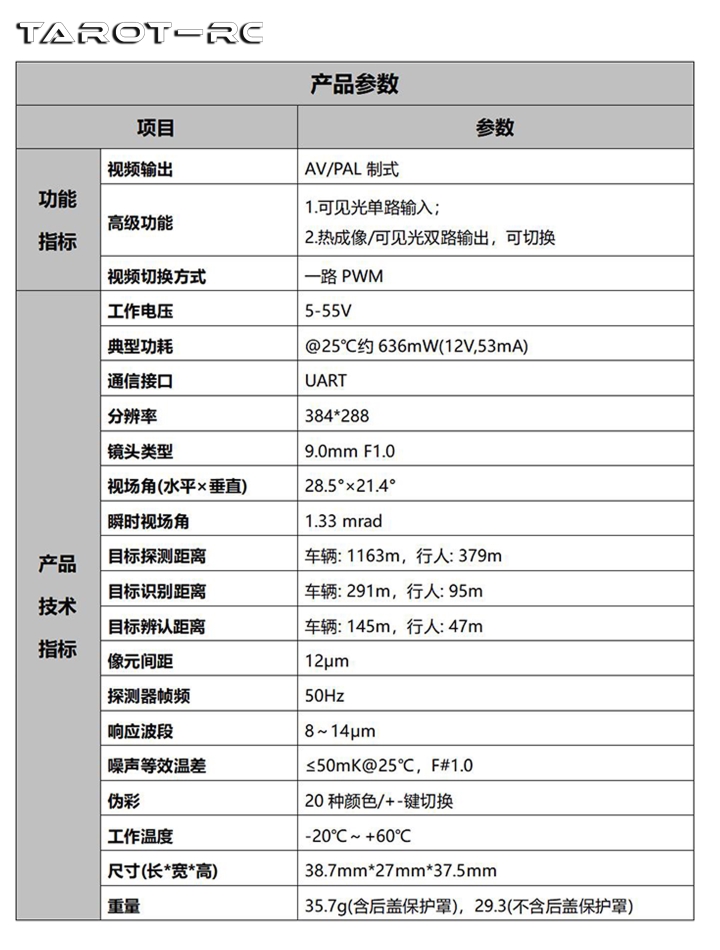 产品名称:Tarot 摄像头/384红外热成像相机/外接可见光/AV双光 TL300M9